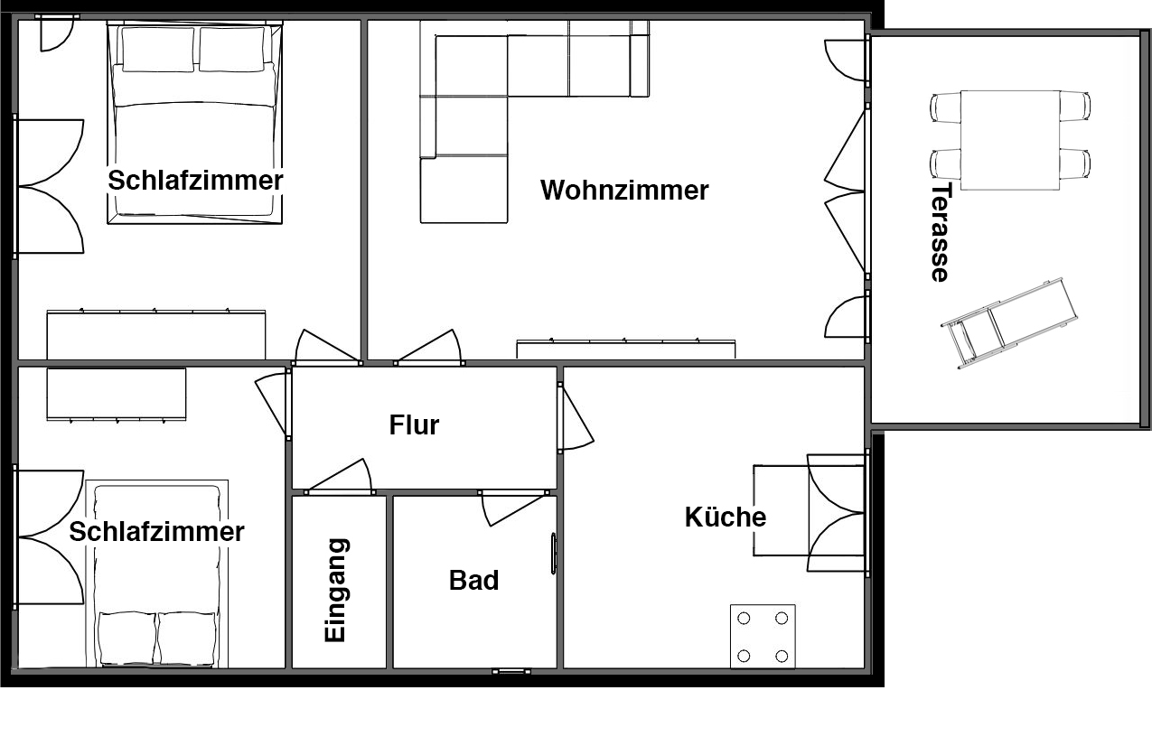 In den beiden Schlafzimmern befinden sich jeweils ein Doppelbett (180x200cm) sowie eine heimische Einrichtung.